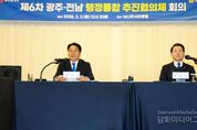 시민행정신문 강갑수 기자 | 광주광역시와 전라남도는 2일 전남 나주시 뉴나주씨티호텔에서 ‘광주전남 행정통합 추진을 위한 제6차 추진협의체 회의’를 개최했다. 이번 회의에는 강기정 광주시장과 김영록 전남지사를 비롯해 양 시·도 공동위원장, 추진협의체 위원 등 20여명이 참석했다. 회의에서는 지난달 30일 국회에 발의된 ‘전남광주 통합특별시 설치를 위한 특별법안’의 주요 내용 공유와 국회 심의 대응 방안, 향후 추진 일정 등을 중심으로 심도 있는 논의가 이뤄졌다. 특별법안은 광주광역시와 전라남도를 하나의 통합특별시로 설치하기 위한 법적 근거를 마련하는 것으로, 통합특별시의 지위와 권한, 행정·재정 특례, 국가 지원 사항 등 387개 조문(375개 특례)으로 구성돼 있다. 인공지능·에너지·문화수도를 비전으로, 첨단산업 육성, 국가 기간산업 경쟁력 강화, 농어촌의 균형 있는 발전 등을 담아 수도권에 대응하는 남부권 성장 축으로 육성하겠다는 의지를 명확히 하고 있다. 이번 회의는 국회 특별법 발의 이후 처음 열리는 추진협의체 회의로, 특별법 통과까지 광주전남의 핵심 특례사항이 충실히 반영될 수 있도록 대응