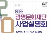 시민행정신문 강갑수 기자 | (재)광명문화재단은 2026년 (재)광명문화재단 사업설명회를 3월 11일 오후 2시 광명시민회관 리허설룸에서 개최한다. 이번 설명회는 광명문화재단의 2026년 비전 및 추진 방향을 시작으로 지역(생활) 문화, 공연·전시, 문화예술교육 및 지원, 문학 사업 소개와 참가자 질의응답 순서로 진행된다. 특히 재단에서 진행하는 공모사업을 ‘2026 광명문화재단 문화예술지원 사업 통합공모’로 묶어 소개하여 각 프로그램의 주요 내용, 운영 일정, 신청 방법 등 정보를 자세하고 정확하게 접할 수 있다. (재)광명문화재단 송은영 대표이사는“재단이 준비한 다양한 사업을 시민 여러분께 직접 소개하고 의견을 듣는 뜻깊은 자리”라며 “이번 사업설명회를 통해 더 많은 분들이 관심을 갖고 여러 사업에 편하게 참여해 주시면 좋겠다.”라고 밝혔다.