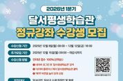 시민행정신문 강갑수 기자 | 대구 달서구는 오는 12월 8일 오전 9시부터 2026년 1분기 달서평생학습관 정규강좌 수강생을 선착순으로 모집한다. 2026년 1분기 운영 기간은 1월 5일 부터 3월 23일 까지이며, 주민들의 다양한 학습 수요를 반영해 총 11개 분야 70개 과정이 개설된다. 이번 강좌는 ▲어학 ▲미술 ▲음악 ▲생활체육 ▲자격증 취득 과정 등 폭넓은 분야로 구성됐으며, 특히 학습 단계별 수요에 맞춰 일부 강좌는 중급반을 신설해 수준별 학습이 가능하도록 했다. 또한 수강 만족도가 높은 어학 과정은 주 2회로 수업을 확대해 학습 효과를 더욱 높였다. 직장인을 위한 목요일 야간 강좌도 지속 운영되어 학습 접근성이 강화됐다. 수강 신청은 달서구민 누구나 가능하며, 달서구 소재 기업 재직자와 학생도 참여할 수 있다. 접수는 네이버 플레이스를 통해 온라인으로 진행되며, 구체적인 신청 방법은 달서구청 홈페이지 공지사항에서 확인할 수 있다. 달서구는 앞으로도 주민들이 일상에서 배움을 즐기고 자기계발을 실천할 수 있도록 양질의 평생학습 프로그램을 지속 확대해 나
