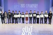 시민행정신문 강갑수 기자 | 수원특례시는 10월 30일 정조테마공연장에서 2025 수원디자인대상 시상식을 열고, 다니엘열방학교 등 5개 작품을 시상했다. 수상작은 건축물 분야 다니엘열방학교(영통구 원천동)·원더풀 우만(팔달구 우만동), 인테리어 분야 수원 지관서가(팔달구 우만동), 공공공간 분야 영흥숲공원(영통구 영통동)이다. 복합문화공간 111CM는 공공공간 분야 특별상(한국디자인단체총연합회장)을 받았다. 수원시가 주최·주관하고 (사)한국디자인단체총연합회가 후원하는 ‘수원디자인대상’은 디자인 자산을 확보하고, 문화가치를 창출하기 위해 우수한 디자인을 선정해 시상하는 것이다. 전문가로 구성된 작품 심사위원회가 수상작을 선정했다. 이날 시상식은 2025 수원도시건축문화제 행사 중 하나로 진행됐다. 수원시는 10월 29일부터 11월 1일까지 정조테마공연장, 수원시미디어센터, 팔달문화센터 등에서 ‘Grayfield; 회색공간’를 주제로 2025 수원도시건축문화제를 연다. 시상식 후 ‘도시의 여백, 가능성을 설계하다’를 주제로 열린 토크콘서트는 홍경구(단국대 건축학부 교수) 수원시 총괄계획가의 기조강연(패