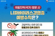 시민행정신문 강갑수 기자 | 전라남도는 설 연휴기간 해외 여행객 증가가 예상됨에 따라 최근 인도 등 일부 국가에서 발생한 ‘니파바이러스감염증(Nipah virus infection)’에 대해 각별한 주의를 당부했다. 니파바이러스감염증은 치명률이 40~75%에 달하는 고위험 감염병으로, 지난해 9월 제1급 법정감염병으로 신규 지정됐다. 지난 1월 인도에서 2명, 방글라데시에서 1명이 발생했으며, 현재까지 국내 감염 보고사례는 없다. 인수공통감염병으로 주된 감염경로는 과일박쥐, 돼지 등 감염된 동물과의 접촉, 생 대추야자수액과 같은 오염된 식품 섭취, 환자의 체액과 밀접 접촉 등이다. 감염 초기에는 발열, 두통, 근육통 등 일반적 증상이 나타나지만, 중증으로 진행되면 뇌염, 의식 저하 등 심각한 신경계 증상을 동반할 수 있다. 현재까지 백신이나 치료제가 없어 ▲(야생)동물과의 접촉 피하기 ▲오염된 음료나 식품 섭취 금지 ▲환자와 직접 접촉 피하기 ▲자주 손씻기와 같은 개인위생 철저 등 예방수칙 준수가 필요하다. 또한 인도·방글라데시 등 니파바이러스 발생 국가를 방문한 후 귀국