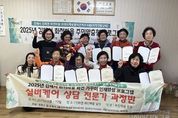 시민행정신문 기자 | 김해시는 진례면 화전마을이 지난 30일 ‘실버케어 상담사 전문가 과정반’ 수료식을 개최했다고 밝혔다. ‘실버케어 상담사 전문가 과정반’은 화전마을 주민이 주축이 되어 취약계층을 대상으로 전문 노인케어 상담 서비스를 제공하기 위해 상담 역량을 향상시키는 교육으로 ▲노인상담 기초, ▲노인문제와 상담, ▲미술치료 등 총 8회차로 구성하여 8월부터 추진됐으며, 교육생 10명 모두 실버케어 상담사 자격증을 취득했다. 특히 자격증을 취득한 주민들은 진례면 농촌마을의 취약계층 돌봄을 위해 화전돌보미 자체활동반으로 활동하며 주민 중심 맞춤형 돌봄 네트워크를 구축할 계획이다. 교육 수료생인 화전마을 배점남 주민은 “이번 교육을 통해 주민들과 함께 나를 알아가고, 서로 알아가는 시간을 보내면서 마음에 있는 이야기를 꺼내니 그간 쌓인 답답한 마음이 풀리는 기분이었다”라며, “이번 실버케어 상담사 교육을 통해 배운 기술을 바탕으로 돌봄 활동을 진행하여 우리 주민들이 요양원에 가지 않고 집에서 건강한 노후를 보낼 수 있도록 열심히 참여하겠다”고 말했다. 한편, 진례면 화전마을은 30년 이상 노후주