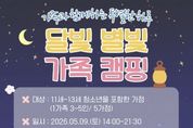 시민행정신문 강갑수 기자 | 송악청소년문화의집은 가족 간 소통과 유대감 강화를 위한 ‘2026년 가족캠핑 프로그램 달빛·별빛 가족캠핑’ 참가자를 모집한다. 이번 프로그램은 오는 5월 9일 오후 2시부터 9시 30분까지 송악청소년문화의집에서 진행되며, 11세부터 13세 청소년을 포함한 가족을 대상으로 운영된다. 신청은 4월 21일부터 28일까지 일주일 진행되며 총 5가정, 최대 25명으로 배움나루를 통해 모집할 예정이다. 특히 접수는 송악 관할 지역(송악·송산·기지시) 거주 가족을 대상으로 우선 진행되며, 이후 잔여 인원에 한해 추가 모집이 이루어질 예정이다. 프로그램은 참가자 집결 및 오리엔테이션을 시작으로 ▲가족 협력활동 ▲캠핑 체험 ▲가족 요리 대결 ▲천체 관측 등 다양한 활동으로 구성되어 있다. 특히 가족이 함께 참여하는 미션형 프로그램을 통해 협동심을 기르고, 일상에서 벗어나 특별한 추억을 쌓을 수 있도록 기획됐다. 또한 캠핑 체험과 더불어 자유시간을 확대하여 참여 가족들이 보다 여유롭게 휴식과 교류를 즐길 수 있도록 운영할 계획이다. 송악청소년문화의집 관계자는 “이번 프로그램은 가족 간 소통의 기회를