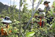 시민행정신문 강갑수 기자 | 무주군이 잦은 기상 이변으로 인한 사과 수급 불안 요인을 차단하고 일손 부족으로 어려움을 겪는 농가들을 돕기 위해 현장에서 직접 사과 수확(후지)을 지원하고 있다고 밝혔다. 이를 위해 지도·연구직 공무원과 각 읍면 상담소장 등 민간 전문가 30명으로 지원반을 구성한 무주군은 오는 10월 말까지 무주읍을 비롯한 6개 읍면을 순회하며 현장 지도에 주력할 방침이다. 무주군에 따르면 지역별로 사과의 당도 및 산도, 전분 지수 등 익은 정도를 파악해 수확 시기를 협의하고 있으며 저온저장고 소독 및 온·습도 관리 요령 등에 대해서도 공유 중이다. 또한 겹무늬썪음병과 갈색무늬병이 발생한 과원을 대상으로 방제 상담을 진행하고 과일 수확 후에 진행하는 ‘엽면시비(잎에 직접 비료 주기)’ 기술에 대해서도 안내와 상담을 병행한다. 김준회 무주군농업기술센터 기술연구과 소득작목팀장은 “예년에 비해 8월 기온이 떨어지고 비가 자주 내려 사과 크기 등 생육 상황은 다소 개선된 면이 있지만 전체 생산량이라던가 출하량은 소폭 감소할 것으로 예상하고 있다”라며 “1년 내 농사짓느라 고생하는 농가들이 만