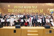 시민행정신문 강갑수 기자 | 대전 서구는 17일 구청 구봉산홀에서 한 해 동안 지역사회 각 분야에서 헌신하며 서구 발전에 기여한 구민들의 공로를 기리는 ‘2025년 서구를 빛낸 자랑스러운 수상자의 날’ 행사를 개최했다. 이번 행사는 수상자와 가족, 내빈 등 400여 명이 참석한 가운데 원활한 진행을 위해 오전과 오후 두 차례로 나뉘어 진행됐다. 오전 1부 행사에서는 87명의 구민이 표창을 받았다. 6·25전쟁 무공에 대한 화랑무공훈장 전수를 비롯해 △공중위생 무료 봉사 △전통시장 활성화 △청소년 범죄 예방 △치매 관리 사업 등 주민의 안전과 건강 증진을 위해 힘써온 유공자들이 수상의 영예를 안았다. 이어 열린 오후 2부 행사에서는 126명의 구민이 수상했다. 지방자치 발전 유공 국무총리상을 비롯해 △구정 발전 △도시재생 △탄소중립 실천 △산불 방지 △지역자율방재단 활동 정책 실천 및 재난 안전 분야에서 활약한 구민들이 포함됐다. 구 관계자는 “수상자 한 분 한 분의 묵묵한 헌신과 노력이 모여 오늘의 서구를 만들었다”며 “앞으로도 구민과 함께 지혜를 모아 구정 발전을 위해 노력하겠다”고