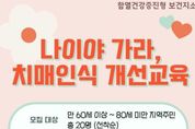 시민행정신문 강갑수 기자 | 익산시가 북부권 어르신을 대상으로 치매 예방과 조기 발견의 중요성을 알리는 프로그램을 운영한다. 익산시 함열건강증진형 보건지소는 6일부터 10일까지 '나이야 가라, 치매 인식개선 교육' 참여자 20명을 모집한다. 이번 프로그램은 치매 인식개선 교육과 인지자극 체험 등을 익산시 치매안심센터 전문 인력이 진행한다. 이를 통해 참여자들이 치매 예방에 필요한 정보를 쉽고 재미있게 익힐 수 있도록 돕는다. 참여 대상은 함열읍, 함라면, 성당면, 용안면, 낭산면, 망성면, 용동면에 거주하는 만60~79세 주민이며, 모집 인원은 선착순 20명이다. 신청은 함열건강증진형 보건지소에 방문하거나 전화로 하면 된다. 이진윤 보건소장은 "치매는 조기 발견과 예방이 중요한 만큼, 이번 교육을 통해 어르신들이 치매에 대한 올바른 정보를 습득하고 건강한 노후를 준비하는 계기가 되길 바란다"며 "많은 관심과 참여를 부탁드린다"고 전했다.