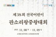 시민행정신문 강갑수 기자 | 전북 고창군이 올해의 어린이 판소리 왕중왕을 가리는 ‘제38회 전국 어린이판소리왕중왕대회’ 참가자를 오는 11월7일까지 모집한다. 차세대 어린이 판소리 명창을 발굴 육성하고 판소리 여섯 바탕 사설을 집대성하신 동리 신재효 선생의 문화예술사적 업적을 기념하며 유업을 계승하기 위해 고창군과 KBS전주방송총국이 공동주최하고 (사)동리문화사업회가 주관한다. 대회는 고창 동리국악당에서 11월8일 예선을 거쳐 이튿날(9일) 축하 공연과 병행하여 예선을 통과한 7명의 어린이가 본선 경연을 한다. 왕중왕전은 KBS전주방송총국이 전국에 방영하여 어린 꿈나무들의 판소리 기량을 널리 알리며, 미래의 판소리 인재를 발굴하고, 우리 전통문화의 가치를 확산하는 가치의 의미를 둔다. 대회 참가는 2024~2025년 국악대회에서 입상한 전국의 어린이로 고창군 홈페이지 공고문을 참고하여 신청하고, 관련 및 자세한 사항은 사)동리문화사업회로 문의하면 된다.