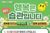 시민행정신문 강갑수 기자 | 2005년 영국의 소도시인 슬라우(Slough)시는 주민을 대상으로 "행복은 정말 바꿀 수 없는 걸까?"라는 질문에서 출발한 사회 실험을 약 12주간 진행했다. 주민들이 감사하기, 웃기, 운동하기, 친절 베풀기처럼 평범하지만 의식적인 행동을 생활 속에서 실천한 것이다. 그 결과 참여자의 행복도가 약 30% 이상 높아졌다. 기후에너지환경부도 이 같은 실험을 조직 내에서 실천하기로 했다. 조직의 행복이 정책 성과로 이어질 수 있을지 흥미로운 시도를 펼치는 것이다. 기후에너지환경부는 3월 6일부터 조직 내 협업과 배려 문화를 확산한 직원을 매주 ‘행복전도사’로 선정하고 해당 부서에 소규모 간식(행복피자)을 제공하는 ‘행복한판’ 프로그램을 시행한다고 밝혔다. ‘행복한판'은 조직 내 협업·배려·감사·웃음 등으로 행복을 확산한 직원을 다른 직원에게 추천받아 행복전도사로 선정해 포상한다. 선정된 직원에게는 소정의 상품과 그 직원이 속한 부서에 간식이 제공된다. 이에 앞서 기후에너지환경부는 2월 9일부터 직원들을 대상으로 ‘행복은 삶의 습관입니다’를 주제로 행복 10계명 실천 운동을 펼치고 있다.