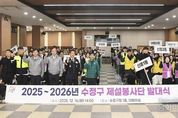 시민행정신문 강갑수 기자 | 성남시는 폭설에 대응하기 위해 수정, 중원, 분당 등 구별로 시민들이 참여하는 제설봉사단을 구성해 운영하고 있다고 18일 밝혔다. 이를 위해 수정구는 지난 12월 16일 오후 2시 구청 1층 대회의실에서 수정경찰서와 합동 대책회의를 하고, 제설봉사단 발대식을 개최했다. 수정구는 경찰과의 합동 대책회의 자리에서 지난 12월 4일 단시간에 집중된 폭설 당시의 현장 대응체계를 점검하고, 도로 교통혼잡과 안전사고 발생을 최소화하기 위한 기관 간 협력 방안과 대응 매뉴얼을 논의했다. 이어진 수정구 제설봉사단 발대식엔 전체 단원 1122명 가운데 100명이 참석해 폭설로 인한 주민 불편을 최소화하고 적극적인 제설 자원봉사 활동에 참여할 것을 다짐했다. 제설봉사단은 강설 시 이면도로 경사로, 보도, 육교 등 제설 취약 지역에 우선 투입된다. 전경만 수정구청장은 “제설봉사단은 제설 작업 이외에도 ‘내 집 앞, 눈 치우기’를 주변에 적극적으로 홍보해 주민들의 관심과 협조를 이끌어 내는 역할도 중요하다”면서 “민‧관‧경의 유기적인 협력을 통해 주민들이 안전하게 겨울을 날 수