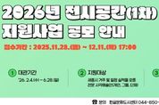 시민행정신문 강갑수 기자 | 세종시문화관광재단 한글문화도시센터는 11월 28일부터 12월 11일까지 지역 시각예술*인의 창작활동을 지원하기 위해 ‘2026년 전시공간 지원사업(1차)’ 공모를 진행한다. 내년에는 예술인의 전문성과 전시 수준을 높일 수 있는 기반을 마련하고, 이를 위한 준비에 집중한다. 특히, 한글문화 진흥을 위해 ‘한글문화’를 주제로 전시를 기획한 예술인에게는 소정의 가점을 부여한다. 이번 공모는 세종시에 거주하며 일정 전시 경력을 갖춘 시각예술인을 대상으로 한다. 지원 자격은 개인전·단체전 실적 등 일정 기준을 충족한 개인, 그룹, 단체이며, 전시 홍보물과 전시장 전경 사진 등 실적 증빙자료 제출이 필요하다. 선정된 예술인은 박연문화관 전시실 또는 BRT작은미술관 중 한 곳에서 12일간 전시를 운영하게 되며, 전시는 2026년 2월 4일부터 6월 28까지 총 18회 걸쳐 진행할 예정이다. 신청은 12월 11일 17:00까지 전자우편로 접수하면 된다. 이후 행정심의와 전문가 심의를 거쳐 선정 결과 재단 누리집을 통해 공지되며, 선정자를 대상으로