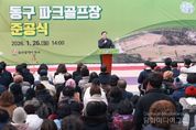 시민행정신문 강갑수 기자 | 울산 동구는 1월 26일 오후 2시 동구 동부동 99-15번지 일원에 지역 주민 150여 명이 참석한 가운데 동구파크골프장 준공식을 개최했다. 동구파크골프장은 안정적인 생활체육 공간 조성을 통하여 주민들의 체력 증진과 건강한 삶을 위하여 총면적 23,466㎡의 규모에 18홀과 부대시설을 조성했다. 시설 조성을 위해 총사업비 73억 5천만 원이 투입됐으며, 2023년 6월 개발제한구역 관리계획 미반영 시설 승인 후 2024년 1월 도시관리계획 결정, 2024년 11월 도시계획시설 실시계획인가, 2025년 4월 공사 착공 및 12월 준공됐다. 한편, 파크골프장을 최상의 상태로 주민들이 이용할 수 있도록 잔디 활착 및 생육을 위해 상반기에는 운영하지 않고 하반기에 개장할 계획이다. 김종훈 동구청장은 “동구파크골프장 준공으로 주민들의 건강 증진과 여가생활에 기여할 것으로 기대된다.”라고 말했다.