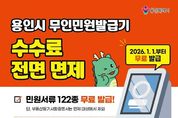 시민행정신문 강갑수 기자 | 용인특례시는 2026년 1월 1일부터 지역 내 설치된 무인민원발급기에서 발급되는 민원서류 수수료를 전면 면제한다고 25일 밝혔다. 이번 조치는 ‘용인시 제증명 등의 수수료 징수 조례’ 일부를 개정해 시민들의 행정 서비스 이용 부담을 줄이기 위해 마련됐다. 이에 따라 2026년부터 지역 내 무인민원발급기에서는 주민등록등·초본, 가족관계서류, 토지·건축 관련 서류 등 총 122종의 민원서류를 무료로 발급받을 수 있다. 다만, 법원 소관 사무인 부동산등기사항증명서는 면제 대상에서 제외된다. 현재 시는 시청과 구청, 읍·면·동 행정복지센터를 비롯해 병원, 은행 등 다중이용시설에 총 57대의 무인민원발급기를 운영하고 있다. 이상일 시장은 “이번 수수료 전면 면제로 시민 누구나 시간과 비용의 제약 없이 무인민원발급기를 이용할 수 있을 것으로 기대한다”며 “앞으로도 시민의 일상에서 체감할 수 있는 편리하고 효율적인 민원환경 조성을 지속적으로 추진하겠다”고 말했다. 한편, 지문 인식이 어려워 무인민원발급기 이용에 불편을 겪는 경우에는 가까운 행정복지센터에서 지문을 재등록하