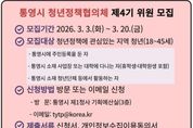 시민행정신문 강갑수 기자 | 통영시는 '통영시 청년 기본 조례' 제12조에 따라 청년 의견 수렴과 정책 모니터링을 위한 ‘통영시 청년정책협의체’ 제4기 위원 20명을 공개 모집한다고 4일 밝혔다. 청년정책협의체는 청년이 직접 정책 의제를 발굴·제안하고, 청년정책 추진 과정에 참여하는 정책 파트너 기구다. 이번 제4기 협의체는 공개모집 20명과 통영시청년센터가 주관하는 통영청년학교(가칭) 졸업자 10명 이내를 포함해 총 30명 내외로 구성될 예정이다. 모집 대상은 공고일 기준 18세 이상 45세 이하 청년으로 ▲통영시에 주민등록을 둔 자 ▲통영시 소재 사업장 또는 대학 재학(휴학생·대학원생 포함) ▲통영시 소재 청년단체 활동자 중 하나 이상을 충족하면 신청할 수 있다. 위원으로 위촉되면 2년간 활동하며, 청년정책 의제 발굴 및 제안, 정책 모니터링, 토론회·행사 참여 등 다양한 활동을 수행하게 된다. 분과는 일자리(취업·창업), 청년복지(주거·복지), 문화소통(문화·참여) 3개 분야로 운영된다. 모집 기간은 오는 20일까지이며, 통영시청 제1청사 기획예산실 인구청년정책팀 방문