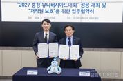 시민행정신문 장규호 기자 | 2027 충청 유니버시아드대회 조직위원회는 10일 서울 상암동 한국저작권보호원에서 대회 콘텐츠 저작권 보호를 위한 업무협약을 체결했다고 밝혔다. 이번 협약은 2027 충청 유니버시아드대회의 핵심 자산인 엠블럼, 마스코트 등 공식 상징물의 무단 도용을 차단하고, 국제 대회 수준의 브랜드 가치를 확고히 지키기 위해 마련됐다. 협약식에는 이창섭 조직위 부위원장과 보호원 박정렬 원장 등 양측 주요 인사 14명이 참석했다. 양 기관은 ▲대회 성공 개최 및 저작권 보호 인식 제고를 위한 공동 홍보 ▲상징물 보호 컨설팅 및 교육 지원 ▲온오프라인 저작권 침해 대응 지원 ▲기타 상호 협력이 필요한 사항 등을 공동으로 추진할 계획이다. 특히, 조직위와 보호원은 긴밀한 협력을 통해 대회 운영 중 발생 가능한 저작권 분쟁을 사전 차단하고, 글로벌 기준의 관리 체계를 구축해 대회 전반의 저작권 보호 수준을 한 단계 끌어올린다는 방침이다. 이창섭 조직위 부위원장은 “전 세계가 주목하는 국제대회인 만큼 저작권 보호를 글로벌 기준에 맞춰 철저히 관리하겠다”며 “이번 협약을 통해 대