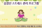 시민행정신문 강갑수 기자 | 익산시가 중장년의 정신건강 증진을 위해 마음 돌봄 지원에 나섰다. 익산시정신건강복지센터는 만 40~64세 중장년을 대상으로 '마음힐링 명상요가' 프로그램을 운영한다고 13일 밝혔다. 이번 프로그램은 스트레스와 정신건강 관리에 어려움을 겪는 중장년층의 심리적 안정과 건강한 일상 회복을 지원하기 위해 마련됐다. 마음힐링 명상요가는 5월 한 달간 매주 목요일 운영되며, 일상에서 쉽게 실천할 수 있는 호흡법과 이완요법, 내면 탐색, 마음챙김 명상 등을 중심으로 진행된다. 참여 신청은 오는 14일부터 5월 4일까지 익산시정신건강복지센터 누리집이나 현수막에 게시된 큐알(QR)코드를 통해 가능하고 참여자는 개별 안내될 예정이다. 참가비는 무료이며, 더욱 자세한 내용은 익산시정신건강복지센터로 문의하면 된다. 양찬모 익산시정신건강복지센터장은 "이번 프로그램을 통해 중장년층이 스트레스 관리 능력을 키우고 보다 건강한 삶을 이어가길 기대한다"며 "앞으로도 시민의 마음건강 회복을 위한 다양한 프로그램을 지속적으로 운영하겠다"고 말했다.