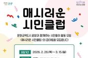 시민행정신문 강갑수 기자 | 광양문화도시센터는 시민의 자발적인 문화활동을 지원하기 위해 2026년 상반기 활동을 함께할 '매시러운 시민클럽' 7기의 참여팀을 모집한다. '매시러운 시민클럽'은 2023년부터 운영해 온 광양문화도시센터의 대표 사업으로, 취향을 기반으로 한 시민의 자발적인 모임 활동을 지원하는 프로그램이다. 그동안 다양한 분야의 시민이 참여해 일상 속에서 문화 활동을 이어왔으며, 참여자 만족도가 높은 사업으로 운영되고 있다. 신청 대상은 취향·선호도·여가 등을 기반으로 한 3인 이상이 구성한 시민모임이다. 활동 주제와 방식, 운영 계획, 모임의 구성 등은 참여팀이 자율적으로 기획하며, 시민이 직접 만들고 실행하는 일상 문화 활동이라는 점이 특징이다. 센터는 활동 주제의 적합성, 모임의 지속 가능성, 활동의 구체성 등을 종합적으로 심사해 총 10개 팀을 선정할 예정이다. 선정된 팀에는 팀당 최대 5회, 총 50만 원 한도의 회의비를 지원한다. 또한 참여팀별 활동이 종료된 이후에는 ‘시민클럽데이’를 통해 10개 팀이 한자리에 모여 그간의 활동 사례를 공유하고 소통하는 자리를 마련한다. 이를
