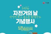 시민행정신문 강갑수 기자 | 전주시는 오는 25일 오전 10시, 치명자산 성지 평화의전당 야외광장(완산구 바람쐬는길 120)에서 ‘자전거의 날 기념행사’를 개최한다. 자전거 이용 활성화와 더불어 자전거 이용 문화 확산을 위해 마련된 이날 행사에서는 오전 10시부터 오후 1시까지 △자전거의 날 기념식 △시민 참여 자전거 행진 △자전거 발전기를 활용한 생과일주스, 비눗방울 만들기 체험 △스피닝 자전거 체험 △자전거 여권 사업 홍보 △찾아가는 자전거 수리센터 등이 운영될 예정이다. 특히 자전거 행진은 평화의전당에서 출발해 바람쐬는길~원색명화마을~정여립 공원을 지나 전주천 자전거길로 돌아오는 약 10㎞ 구간을 시민들이 함께 봄바람을 느끼며 자전거를 타고 달리게 된다. 또한 개인 자전거가 없는 시민도 누구나 전주시 공영자전거 ‘꽃싱이’(1인용, 2인용, 아동용)를 무료로 대여해서 행진에 참여할 수 있다. 자전거 행진 참여를 원하는 시민은 오는 24일까지 행사 포스터의 QR 코드에 접속해 신청하거나, 전화로 신청하면 된다. 또, 행사 당일 현장 신청도 가능하다. 이와 함께 이날 자전거 행진에 참