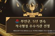 시민행정신문 강갑수 기자 | 부안군은 행정안전부에서 주관한 2026년(2025년 실적) 지방정부 적극행정 종합평가에서 우수기관으로 선정돼 지난 2021년 하반기 성과 점검부터 5년 연속 우수기관 선정이라는 금자탑을 쌓았다고 밝혔다. 행정안전부 발표에 따르면 군은 전국 243개 지방정부(광역 17개, 기초 226개)를 대상으로 한 이번 평가에서 우수한 성적을 거둬 전북특별자치도 시‧군 중 유일하게 5년 연속 적극행정 우수기관으로 선정되는 영예를 안았다. 이번 성과는 일시적인 결과가 아니라 지난 5년간 꾸준히 이어온 행정 혁신의 결실이라는 점에서 의미가 깊다. 군은 2022년(21년 하반기 성과 점검) 선정을 시작으로 2023년(2022년 실적), 2024년(2023년 실적), 2025년(2024년 실적)에 이어 올해 2026년(2025년 실적) 평가까지 단 한 차례도 거르지 않고 우수기관 타이틀을 지켜냈다. 특히 2024년과 2025년에는 상반기 적극행정 성과 점검에서도 잇따라 우수기관으로 선정돼 행정안전부 장관상을 수상하는 등 전국 최고 수준의 업무 역량을 증명해 왔다. 이번 평가는 적