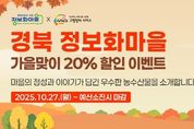 시민행정신문 강갑수 기자 | 경상북도는 도내 정보화마을의 우수 농수산물 판로 확보와 홍보를 위해 27일부터 경북고향장터 ‘사이소’ 테마관에서 ‘경북 정보화마을 우수 농수산물 가을맞이 할인전’을 개최한다. 이번 할인 행사는 본격적인 수확철인 가을을 맞아 사과, 포도, 감, 대추, 잡곡, 꿀, 마늘, 홍게, 오징어 등 도내 정보화마을의 우수한 농수산물을 시중가보다 20% 할인된 가격에 판매한다. 사이소 쇼핑몰에 접속해 메인 배너 또는 ‘경북 정보화마을’ 테마관을 통해 할인된 상품을 예산 소진까지 구매할 수 있으며, 인기 상품의 경우 조기에 할인이 종료될 수 있다. 정보화마을은 농어촌 지역의 디지털격차 해소와 전자상거래, 체험관광을 통해 주민소득 증대와 지역경제 활성화에 기여하고 있으며, 경북에는 35곳의 마을이 운영 중이다. 김경숙 경상북도 정보통신담당관은 “이번 행사를 통해 경북 정보화마을을 널리 알리고, 소비자들이 품질 좋은 상품을 합리적인 가격에 만날 수 있는 계기가 되길 바란다”며 “앞으로도 정보화마을이 디지털격차 해소와 전자상거래, 체험관광 활성화를 통해 주민 소득 향상과 마을공동체 활성화에