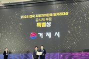 시민행정신문 강갑수 기자 | 거제시는 지난 9월 30일 청주 오스코컨벤션센터에서 열린 ‘2025 전국지방치단체 일자리대상’ 시상식에서 일자리 공시제 부문 특별상(장관상)을 수상했다고 밝혔다. 2025년 일자리대상은 고용노동부가 전국 지방자치단체를 대상으로 지난해 일자리 목표와 추진 실적을 종합적으로 평가해 우수한 자치단체를 선정 시상하는 행사이다. 거제시는 지난 몇 년간 지역 산업 특성에 맞춘 맞춤형 일자리 정책을 지속적으로 추진하며 청년·여성·중장년층 등 다양한 계층의 고용확대에 기여한 점을 높이 평가받았다. 또한, 주력산업인 조선업 기업과 협력 네트워크를 통해 고용 및 노동자 지원 등의 사업을 운영하고 일자리 질 개선에도 힘써왔다. 옥치덕 경제해양국장은 이날 수상식에 참석해 “앞으로도 우리 거제시는 일자리 정책을 단순한 취업지원 차원을 넘어, 지역사회 전반의 지속가능한 성장전략과 연계하여 시민들이 정주하고 일자리가 보금자리가 되는 양질의 일자리 정책을 펼쳐나가겠다”고 밝혔다.