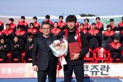 시민행정신문 장규호 기자 | FC강릉(재단법인 강릉시민축구단)은 2026시즌을 앞두고 직무대행 체제였던 감독직위에 임다한 감독을 임명하여, 새 시즌을 향한 팀 운영 체제를 완성했다. 구단은 2026년 1월 30일, 임다한 감독 임명식을 개최했다. 이날 FC강릉 이사장인 김홍규 강릉시장이 직접 임명장을 수여하며, 감독 직무대행 체제로 운영되던 팀이 정식 감독 체제로 전환했음을 대외적으로 분명히 했다. 임다한 감독의 선임을 계기로 FC강릉은 2026시즌을 향한 지휘 체계를 명확히 정립하고, 전지훈련을 포함한 시즌 준비에 속도감 있게 돌입할 계획이다. 임명식 직후에는 2026시즌을 대비해 구성이 완료된 선수단(40명: 코치8, 선수단32)의 첫 공식 행사로 단체사진 촬영이 이어졌다. 이번 행사는 완성된 선수단의 현재 모습을 대중에게 처음 선보이는 자리로, 2026시즌 FC강릉의 출발을 상징하는 장면이 될 전망이다. 또한 김홍규 이사장은 전지훈련을 앞둔 선수단에게 격려와 응원의 메시지를 전하며 선전을 당부했고, 선수단 역시 새 시즌을 향한 각오와 결의를 다지는 시간을 가졌다. FC강릉 최윤순