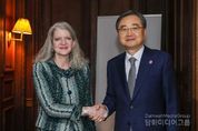 시민행정신문 이정하 기자 | 주요 7개국 협의체(G7) 외교장관회의 참석차 프랑스를 방문 중인 조현 외교부 장관은 3월 26일 오후(현지시간) 미측 수석대표로 참석중인 앨리슨 후커(Allison Hooker) 美 국무부 정무차관을 접견하고, 최근 중동 및 지역 정세, 한미 정상회담 공동성명(Joint Fact Sheet, JFS) 이행 등 한미 간 현안 등에 대해 의견을 교환했다. 조 장관은 호르무즈 해협 상황에 대해 우려를 표명하고, 동 해협 내 우리 선박을 포함, 모든 선박에 대한 항행 안전 보장과 글로벌 에너지 및 물류 공급망 정상화를 위한 긴장 완화 조치가 무엇보다 시급하다고 강조하면서 이를 위해 긴밀히 소통해나가자고 했다. 후커 정무차관은 이에 공감하고, 우리 정부가 '호르무즈 해협 관련 공동성명'동참 등을 통해 안전하고 자유로운 통항을 확보하기 위한 국제사회의 노력에 기여하고 있음을 평가했다. 조 장관과 후커 차관은 최근 대미투자특별법 국회 통과 등 투자합의 이행의 진전을 평가하고, 한미 JFS 안보 분야 이행을 위한 후속 실무 협의도 조속히 개시해 나가자는데 의견을 같이했다. 양측은 여러 불확실성