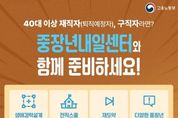 시민행정신문 장규호 기자 | 40대 이상 재직자(퇴직예정자), 구직자라면? 중장년내일센터와 함께 준비하세요! - 생애경력설계 프로그램 : 직업역량, 가치관 분석 등 미래 경력 대안 탐색 지원 - 전직스쿨 프로그램 : 변화 관리 및 취업·전직 가능성 제시 - 재도약 프로그램 : 구직의욕 고취 및 구직 스킬 향상 지원 - 다양한 중장년 정책 안내 : 일경험, 지원금, 일자리 등 정보제공 · 비용 부담 ZERO! 전액 무료! · 간편한 온라인 신청 가능! 전국 38개 중장년내일센터로 오세용!