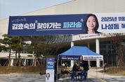 시민행정신문 기자 | 김효숙 세종특별자치시의회(나성동, 더불어민주당) 부의장이 시민과 직접 소통하고 세종시와 나성동 발전을 위해 고견을 듣는 ‘찾아가는 파라솔’ 행사를 13일 오전 10시부터 오후 5시까지 나성동 행복누림터 앞에서 개최했다. 지난 2023년 11월 의정보고회 개최 이후 더 많은 시민을 만나기 위해 지난해부터 11월이면 야외에 아침부터 저녁까지 파라솔을 펴고 주민과 당원을 만나는 자리를 마련하고 있다. 김효숙 부의장은 “정해진 짧은 시간 동안 이뤄지는 보고회 형식으로는 더 많은 분을 뵙기 어려워 하루 종일 시민을 기다리는 현장 상담 방식을 바꿨다”며 “생각보다 많은 분이 찾아와주셨는데 오전 10시부터 시작인데도 오전 9시 20분부터 기다리고 계시는 시민분도 계셨고, 오가다 편하게 들리거나 지난해에 이어 또 방문하신 단골 주민도 생겼다”고 설명했다. 이어 “우리 지역을 위해 일하는 시의원과 커피 한 잔 하며 편하게 현안에 대해 대화할 수 있다는 것을 가장 좋게 평가하시는 것 같다”며 “나성동 학생들의 통학 및 진학, 도시상징광장 활성화, 어반아트리움 등 상가공실 문제 등 나성동 주요 현안에 대한