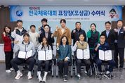 시민행정신문 기자 | 세종특별자치시교육청은 11월 14일에 청사 4층 대회의실에서 ‘제106회 전국체육대회’ 시상식을 개최했다. 이번 시상식에는 메달을 획득한 학생선수들을 비롯해 지도자와 지도교사들이 참석하여, 그동안의 땀과 노력으로 일궈낸 성과를 함께 기념하고 서로를 격려하는 뜻깊은 시간을 가졌다. 세종시 학생선수단 83명은 지난 10월 17일부터 23일까지 부산광역시 일원에서 열린 ‘제106회 전국체육대회’에서 ▲레슬링 2개 ▲복싱 1개 ▲태권도 1개 등 총 4개의 동메달을 획득하며 대장정을 마무리했다. 세종시교육청은 이번 대회에서 우수한 성과를 거둔 학생선수에게는 장학증서, 지도자에게는 포상금, 지도교사 및 소속학교에는 교육감 표창과 포상금을 각각 수여했다. 레슬링 자유형 86kg 부문에서 동메달을 수상한 두루고등학교 최완규 학생은 “레슬링 운동부지도자인 신창호 선생님의 가르침 아래 체력과 기술 모두에서 크게 성장할 수 있었다.”라며, “앞으로도 꾸준히 노력해 후배들에게 자랑스러운 선배가 되고, 최고의 레슬링 선수가 되겠다”고 소감을 전했다. 구연희 교육감 권한대행은
