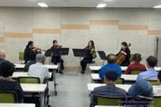 시민행정신문 기자 | 사하구 치매안심센터는 지난 4월 24일 사하구보건소 3층 보건교육장에서 치매환자와 가족, 보호자 등 40여 명을 대상으로 '찾아가는 예술단 공연'을 성황리에 개최했다. 이번 공연은 문화소외계층의 문화예술 향유 기회를 확대하기 위해 부산시립예술단이 운영하는 '찾아가는 예술단' 프로그램의 일환으로, 공연장 방문이 어려운 치매환자와 가족에게 직접 찾아가는 방식으로 진행돼 정서적 안정과 치유의 시간을 제공했다. 이날 공연에는 부산시립예술단 청소년교향악단 단원 4명(바이올린, 비올라, 첼로)이 참여해 ‘사랑의 인사’, ‘베토벤 바이러스’, ‘어머나’, ‘붉은 노을’ 등 다양한 곡을 현악 앙상블로 선보였다. 특히 익숙한 멜로디를 중심으로 구성된 프로그램은 어르신들의 높은 호응과 적극적인 참여를 이끌어냈다. 공연을 관람한 어르신들은 연주에 맞춰 노래를 따라 부르며 즐거운 시간을 보냈으며, 일부는 현악 연주를 처음 접하는 경험에 큰 흥미를 보였다. 또한 “이런 공연을 가까이에서 접할 수 있어 감사하다”, “음악을 통해 큰 위로를 받았다” 등 높은 만족도를 나타냈다. 사하구 치매안심센터는 이