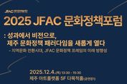 시민행정신문 기자 | 제주문화예술재단(이사장 김석윤)은 '다시 심는 성과, 피어나는 비전'이라는 슬로건으로 '2025년 재단 성과공유주간(이하 성과공유주간)'을 개최한다. 프로그램은 제주아트플랫폼(5층)에서 12월 4일부터 6일까지 3일간 진행된다. 이번 성과공유주간은 2025년 한 해의 재단 지원을 받아 이루어진 예술창작 활동과 도민 문화 참여 활동의 결실을 함께 확인할 수 있는 자리이다. 아울러 지역문화 전환 시대에 재단의 문화정책 미래 방향에 대한 담론을 나누는 시간도 마련한다. 세부 프로그램으로는 ▲문화정책포럼, ▲예술활동 쇼케이스, ▲전시, ▲도민 체험프로그램으로 문화예술을 사랑하는 도민, 예술인 누구나 참여할 수 있다. 문화정책포럼은 〈성과에서 비전으로, 제주 문화정책 패러다임을 새롭게 열다〉를 주제로 개최한다. 포럼은 ▲기조발제 ‘키워드로 보는 지역문화 정책 방향(장세길 전북연구원 선임연구위원)’, ▲주제발표① ‘생활문화예술활동 지원 성과로 보는 미래 정책적 역할(현혜경 제주연구원 부연구위원)’, ▲주제발표② ‘서울 ’新대학로 시대‘ 사례로 보는 물리적 거점 기반 시민 문화참여권 확대 방안(장재환 서울문화재