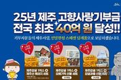 시민행정신문 강갑수 기자 | 제주특별자치도는 올해 고향사랑기부금이 4일 기준 전국 최초로 단년도 40억 원(40억 700만 원, 3만 9,454건)을 넘어섰다고 밝혔다. 이는 전년 동기 대비 모금액 114%(19억 원 → 40억 원), 모금 건수 134%(1만 6,871건 → 3만 9,454건) 증가한 수치로, 제주 고향사랑기부제가 시행 3년차에 접어든 올해도 독보적 성장세를 이어가고 있다. 제주도는 2023년 18억 원(모금 건수 전국 1위)으로 전국 2위, 2024년 36억 원으로 전국 1위를 기록했으며, 올해도 12월 초 40억 원을 넘어서며 선도 지자체로 자리매김했다. 이러한 성과는 △철저한 답례품 품질관리 △전국 최초 기부자·연속기부자 예우정책 △제주 가치 보존 기금사업 확대 등 차별화 전략이 주요 요인으로 분석되고 있다. 제주도는 지역 특산물 중심의 고품질 답례품 발굴과 신속 배송, 민원 대응 강화로 기부자 만족도를 높이고 있으며, 제주경제통상진흥원과 협업해 모니터링 체계를 고도화하는 등 답례품 관리의 전문성을 강화하고 있다. 11월 13일부터 답례품으로 연말 한정 ‘스페셜