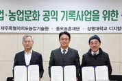 시민행정신문 강갑수 기자 | 제주특별자치도 농업기술원이 동오농촌재단(이사장 이병만), 상명대학교 디지털이미지연구소(소장 양종훈)와 함께 제주 농업·농업문화의 공익기록 및 홍보 활성화를 위한 협력체계를 구축했다. 세 기관은 20일 농업디지털센터에서 ‘제주 농업·농업문화 공익 기록사업’을 위한 업무협약을 체결했다. 협약식에는 동오농촌재단 장성식 부사장과 상명대 디지털이미지연구소 양종훈 소장 등 10여 명이 참석했다. 이번 협약은 제주 농업과 농업문화, 해녀와 농업이 결합된 제주 고유의 생활 문화를 체계적으로 기록하고 공익적 시각 기록물로 구축하기 위해 마련됐다. 구축된 기록물은 교육·연구·정책·홍보 등 공공 영역에서 폭넓게 활용된다. 협약에 따라 각 기관은 공공 아카이브 기준에 부합하는 사진 촬영, 데이터 관리, 기록물 구축, 시각적 기록 콘텐츠 제작, 연구 및 학술 자료 공유 등을 상호 협력해 추진할 계획이다. 농업기술원은 제주 농업·농업문화 관련 연구 및 학술 자료를 공유하고, 기록사업 추진을 위한 행정 협력과 지역 특화 농업문화 자문 등을 담당한다. 재단은 사업 기획과 총괄 운영을