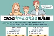 시민행정신문 기자 | 제주특별자치도교육청은 대입 정보 제공을 위한 ‘2026년 학부모 진학코칭 아카데미’를 3월 13일 서귀포시청 문화강좌실과 14일 제주학생문화원에서 개최한다. 학부모 진학코칭 아카데미는 대입을 준비하는 수험생과 보호자를 대상으로 매년 운영되는 대학 진학 정보 제공 프로그램으로 도교육청 제주진로진학지원센터가 주관하며 올해는 지역별 참여 기회를 확대하기 위해 제주시와 서귀포시에서 각각 개최하고 학년별 특성에 맞춰 대상을 구분해 운영한다. 이번 설명회에는 다년간 고3 진학 지도를 맡아 온 대입지원관들이 강사로 나서 고3 학부모에게는 2027학년도 대입 전형과 주요 변화 사항을 고1·2 학부모에게는 2028학년도 대입 개편 주요 내용을 중심으로 알기 쉽게 안내할 예정이다. 세부 일정은 서귀포시 지역의 경우 3월 13일 오후 5시 30분(고1·2), 오후 7시 30분(고3) 서귀포시청에서 진행되며 제주시 지역은 3월 14일 오전 10시(고1·2), 오후 1시(고3) 제주학생문화원 대극장에서 열린다. 참가 신청은 27일 오전 9시부터 3월 10일 오후 6시까지 제주진로진학지원센터 누리집을