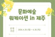 시민행정신문 기자 | 제주특별자치도와 한국광역문화재단연합회가 주최하고 제주문화예술재단(이사장 김석윤)이 주관하는 2026년 ‘문화예술 워케이션 in 제주’ 1차 프로그램이 오는 20일부터 4월 30일까지 운영된다. 일(work)과 휴가(vacation)를 병행하는 제주 워케이션은 2023년 시범 운영 이후 올해로 4년 차를 맞이했다. 이번 1차 운영에는 한광연 회원기관 종사자 20여 명이 제주 원도심을 거점으로 새로운 업무 환경을 경험한다. 참여자들은 원도심에 소재한 제주소통협력센터를 거점 오피스로, 재단이 운영하는 예술공간 이아와 산지천갤러리를 위성 오피스로 활용해 근무할 예정이다. 또한, ‘제주도립김창열미술관’ 전시 관람과 ‘환상숲곶자왈’ 체험 등 문화탐방 프로그램을 통해 제주의 문화와 자연을 경험하게 된다. 본 프로그램은 2023년 11월 제주도와 한광연이 체결한 업무협약에 기반하며, ▲문화예술 기반의 협력·교류를 위한 공동사업 발굴 ▲제주 지역문화 자원활용 상호 교류 등을 주요 내용으로 하고 있다. 재단 김석윤 이사장은 “올해로 4년 차를 맞이한 제주 워케이션은 문화예술 기관