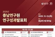 시민행정신문 강갑수 기자 | 충남연구원은 오는 23일 오전 9시부터 연구원(공주 본원)에서 ‘2025년 연구성과발표회’를 개최하고, 올 한 해 동안 축적한 연구성과를 도 및 시·군 정책 수요자와 도민에게 공유하는 자리를 마련한다고 밝혔다. 이번 발표회는 지방소멸, 탄소중립·기후위기, 지역산업 및 농촌, 인구·정주, 고등교육·과학기술, 미래 신산업, SOC 등 민선 8기 충남의 핵심 정책방향을 종합적으로 제시하는 자리다. 연구원 관계자는 “발표회는 2025년 충남연구원의 연구결과물을 체계적으로 정리·환류해 정책활용도를 높이고, 도민 삶의 질 향상에 실질적으로 기여할 수 있는 실행 가능한 정책과제를 확산하는 것을 목표로 한다”고 말했다. 올해는 주제별 13개 분과에서 총 41개 과제의 발표와 토론으로 진행된다. 먼저 A세션(10:10~11:30)은 지역산업Ⅰ, 농촌공동체·복지, 정주환경, 인구정책Ⅰ 등 4개 분과로 나뉘어 시작된다. 이어지는 B세션(13:30~14:50)은 문화관광, 인구정책Ⅱ, 환경Ⅰ, 지역개발 등으로 구분해 진행된다. 그리고 마지막 C세션(15:20~16:40)인 환경Ⅱ, 지역소멸 대응, 지역산