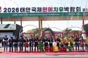 시민행정신문 강갑수 기자 | 푸른 파도 넘실대는 충남 태안 안면도 바닷가에서 ‘꽃처럼 피어나는 건강·치유의 시간’이 마침내 꽃망울을 터뜨렸다. 태안국제원예치유박람회 조직위원회는 25일 안면도 꽃지해안공원에서 ‘2026 태안국제원예치유박람회’ 개막식을 열고, 박람회 성공 출발을 안팎에 알렸다. 다음 달 24일까지 안면도 꽃지해안공원 일원에서 30일 간 펼치는 태안국제원예치유박람회는 ‘자연에서 찾는 건강한 미래’를 주제로, ‘꽃처럼 피어나는 치유의 시간’을 슬로건으로 잡았다. 전시·체험관은 △미디어 아트로 원예치유를 풍성하게 즐기는 ‘특별관’ △우리의 농업이 치유가 되는 ‘치유농업관’ △세계의 정원 속 동화 같은 순간은 담은 ‘국제교류관’ △충남형 첨단 원예산업을 만나는 ‘산업관·충남스마트농업관’ △원예치유관 △플라워마켓 △15개 시군관 등으로 구성했다. 특별관은 대형 미디어아트 전시관으로, 6개 공간에서 인공지능(AI) 라이브 스케치를 통한 ‘나만의 꽃 맵핑’, 꽃과 교감하는 오디오 인터렉션, 꽃밭 위 나비가 되는 체험 등을 만날 수 있다. 치유농업관은 충남형 치유농업 전시·체험 공간이다