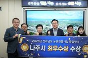 시민행정신문 강갑수 기자 | 나주시가 농업 경쟁력 강화와 매력 있는 농촌 구현에 힘써온 결실로 2025년 전라남도 농촌진흥사업 종합평가에서 최우수상을 받았다. 지난해 7월 농축산식품국과 농업기술센터의 분리 조직개편으로 농업행정과 산하에 재편된 농촌진흥팀은 이번 수상을 통해 1년 반 만에 전문적인 업무 역량을 대외적으로 인정받았다. 26일 나주시에 따르면 이번 평가는 올 한 해 도내 각 시군 농업기술센터에서 추진한 농촌진흥사업 성과를 시상하는 제도다. 평가 항목은 농촌진흥청 지표인 ‘기술보급 기반 확대 노력도’, ‘현장 애로 해소 및 신기술 확산 실적, ’농촌자원 활성화‘, ’농업재해 대응 및 병해충 예방실적‘, ’전문역량 개발 및 청년농업인 육성‘ 등 주요 평가 항목에도 자체 지표를 더해 총 13개 항목으로 구성됐다. 나주시는 특히 농업재해 대응과 병해충 예방 실적, 전문 역량 개발 및 청년 농업인 육성 분야에서 뛰어난 성과를 거두며 전 지표에 걸쳐 고른 실적을 달성했다. 전체 면적의 약 43%가 농림 지대인 나주시는 전국 최대 배 재배 지역이자 도내 벼 재배 규모 3위, 미나리와 고추는 1위를 기